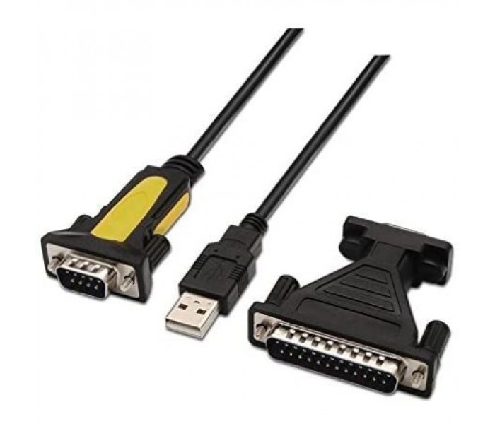 CONVERTIDOR USB A SERIE, TIPO A/M-RS232 DB9/M DB25. NOMBRE: CONVERTIDOR USB A SERIE, TIPO A/M-RS232 DB9/M DB25/H, 1,8 M, P/N: 10.03.0002, EAN: 8433281000568, DESCRIPCION:, § Adaptador USB a Serie para impresoras o cualquier otro dispositivos con interfaz serie, § El cable lleva conector USB tipo A macho en un extremo y RS232 macho en el otro, § Incluye adaptador DB9 macho a DB25 hembra, § Soporta velocidad de transferencia superior a 1Mbps, § Soporta Wake-Up remoto y gestión de alimentación, § Requisitos del sistema: Windows 98SE/ME/2000/XP/Vista/Win7, Linux, Mac os v8.6 o superior y puerto USB en el PC, § Contenido del paquete: cable conversor y CD controladora, LONGITUD: 1.8 metros, COLOR: negro, NORMATIVAS: RoHS, CE, TEST DE FUNCIONAMIENTO: 100% testado