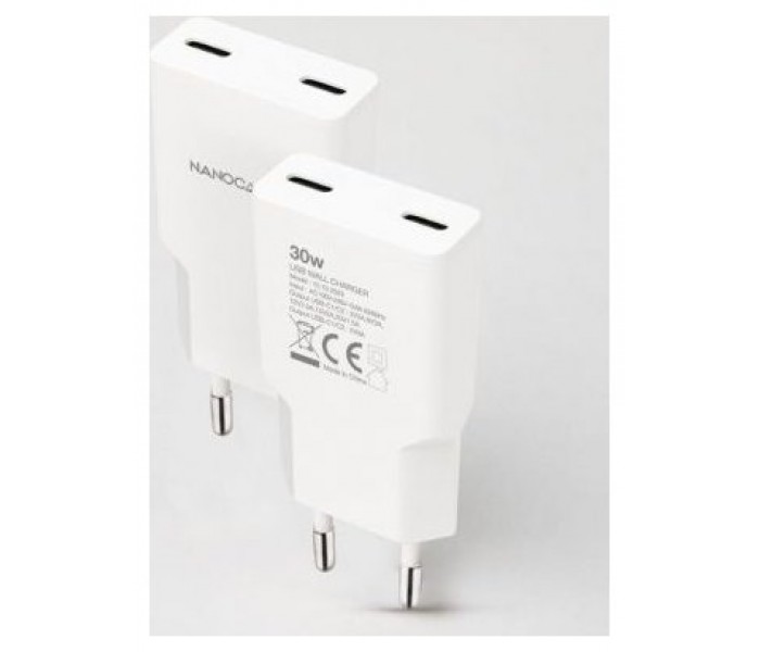 Cargador de Pared Nanocable 10.10.2029/ 2xUSB Tipo-C/ 30W/ Blanco