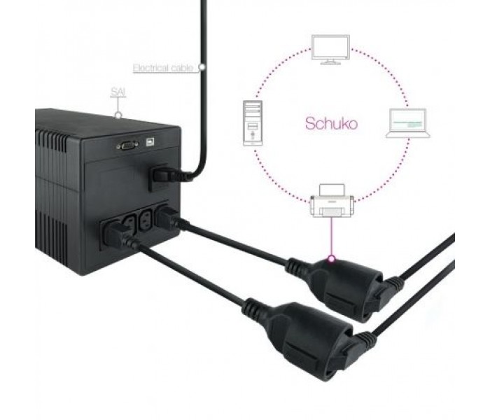 - Aplicado como complemento al conexionado de SAIs, que no dispongan de tomas Schuko.
