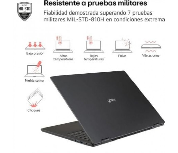 LG gram ha sido diseñado con un material duradero pero ligero y ha sido sometido a un test de durabilidad militar de 7 niveles de resistencia para ofrecer un buen rendimiento en condiciones exigentes.
