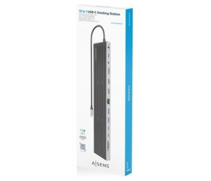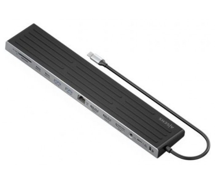 ASUC-13P042-GR – USB-C Dock 13 en 1, USB-C a 2xHDMI, 1xDisplayport, 1xRJ45, 3xUSB-A, 2xUSB-C, 1xUSB-C PD, 1xSD, 1xMicro SD, 1xAudio, 1xRanura Kensington, 30cm