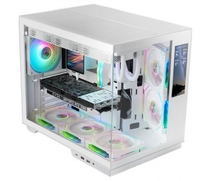 Descubre la MC-MIRAGE, una caja gaming ATX que lleva la personalización y el rendimiento a un nuevo nivel gracias a su exclusiva pantalla integrada LCD IPS de 7,2” y su elegante diseño panorámico en cristal templado. Con una estructura de doble cámara, compatibilidad avanzada y espacio para hardware de última generación, está creada para entusiastas, gamers y creadores que buscan un setup único, sofisticado y cargado de innovación.