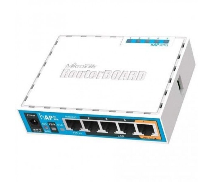PUNTO DE ACCESO WIFI MIKROTIK HAP AC LITE DOBLE CONCURRENCIA - AC750 - 2.4/5GHZ - 5* LAN 10/100 (SALIDA POE EN PUERTO 5) - USB - ROUTEROS