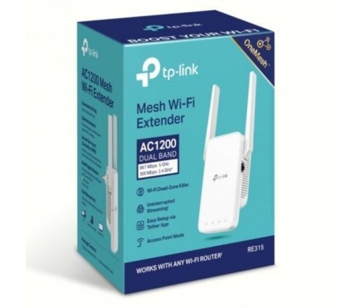 Extensor de rango Wi-Fi en malla AC1200 Elimina las áreas de señal débil con cobertura WiFi para toda la casa. La conexión WiFi de doble banda de 2,4 GHz (300 Mbps) y 5 GHz (867 Mbps) garantiza una experiencia inalámbrica más estable. ? Crea una red Mesh al conectarse a un enrutador OneMesh para una cobertura perfecta en todo el hogar. ? Selección de ruta adaptable: se conecta a la ruta de conexión más rápida al enrutador automáticamente y se ejecuta a la máxima velocidad. Modo de alta velocidad: maximiza la velocidad mediante el uso de una banda WiFi como backhaul dedicado, ideal para juegos y transmisión HD. Modo AP: cree un nuevo punto de acceso Wi-Fi para mejorar su red cableada con capacidad Wi-Fi. El indicador de señal inteligente ayuda a encontrar la mejor ubicación para una cobertura Wi-Fi óptima al mostrar la intensidad de la señal. Presione el botón WPS para conectarse fácilmente al enrutador y podrá administrar uniformemente desde la aplicación Tether o la interfaz de usuario web. Funciona con cualquier enrutador Wi-Fi o punto de acceso inalámbrico. §