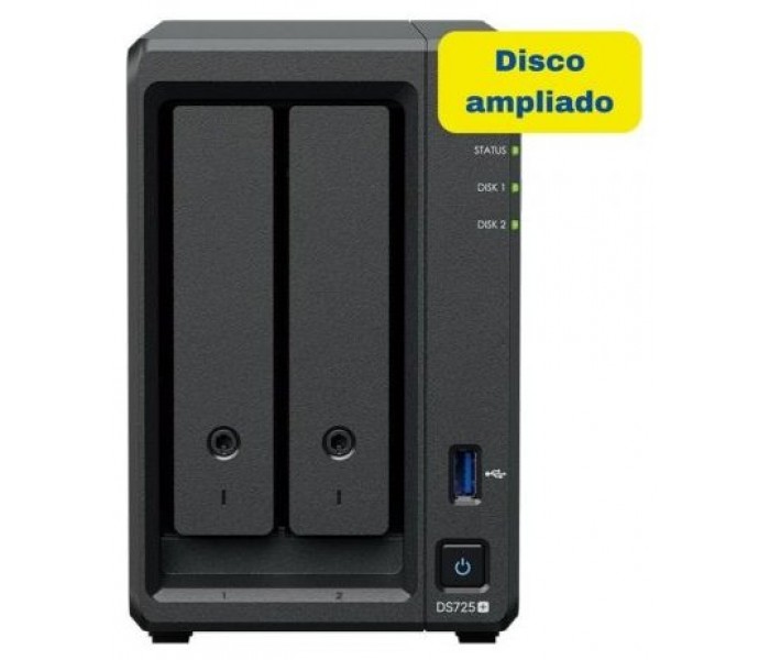 El DS725+ cuenta con conectividad 2.5GbE integrada y admite tanto SSDs SATA como HDDs en bahías internas de 2.5"/3.5", así como unidades M.2 NVMe a través de ranuras M.2 para su uso como caché.