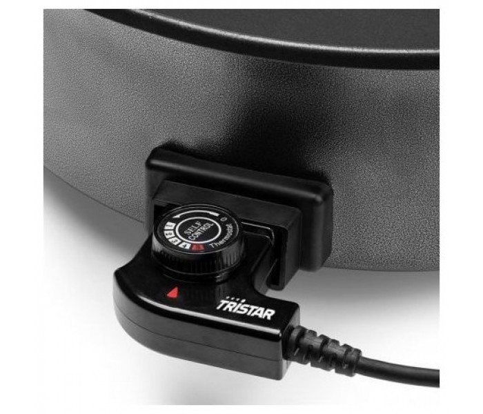 Sartén eléctrica Tristar, accesorio divisor, tapa con válvula de vapor, termostato ajustable, cable de alimentación extraíble, manual