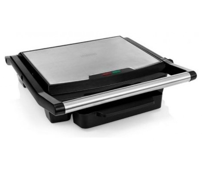 Este práctico grill de contacto es apto para preparar carnes, pescados, verduras, sandwiches, paninis, etc. Está provisto con un duradero revestimiento antiadherente, así que mantequilla o aceite no es necesario.