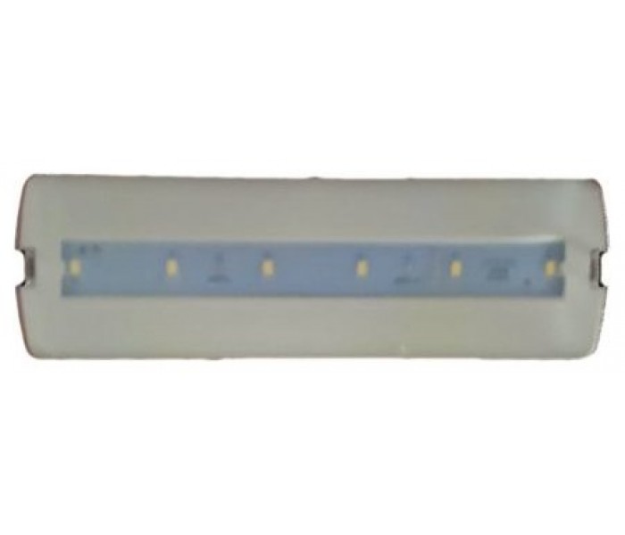 Luminaria LED de emergencia fabricada con un cuerpo de policarbonato en blanco y un difusor del mismo material. Cuenta con una potencia de 250 lúmenes, un ángulo de apertura de 120º y un IP43. Permite el cambio del modo permanente a no permanente sin necesidad de desmontar la luminaria.