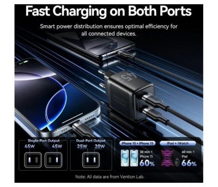 Cargador de Pared GaN Vention FEFW0-EU/ 2xUSB Tipo-C/ 45W