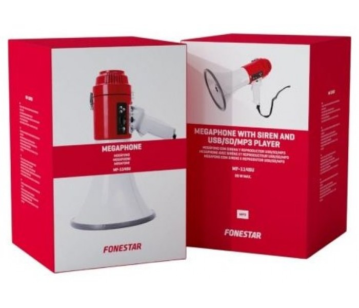 Megáfono con sirena Fonestar MF-114SU/ 25W/ USB/ SD/ a Pilas/ a 12V CC