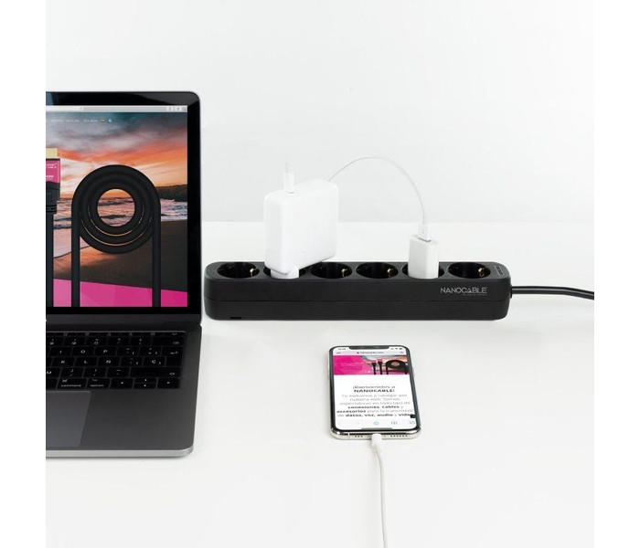 Regleta Nanocable 10.37.0006-NS-BK/ 6 Tomas de Corriente/ Cable 1.4m/ Negra