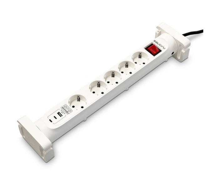 Protege tus dispositivos electrónicos de las imprevisibles fluctuaciones eléctricas con la gama SPS SAFE S de Salicru. Una gama que ofrece entre 4 y 6 tomas de corriente CA, y dos modelos que integran dos puertos USB-C y un puerto USB-A de carga de hasta 20W, garantizando una protección fiable contra picos de tensión, rayos y contaminación eléctrica. Son ideales para portátiles, consolas de videojuegos, altavoces y otros equipos electrónicos de tamaño medio, proporcionando también una carga segura para tus dispositivos móviles.