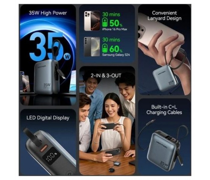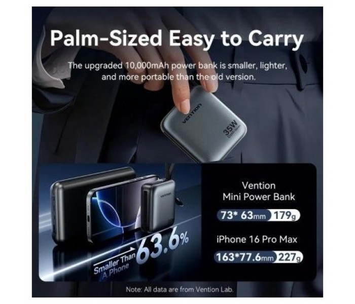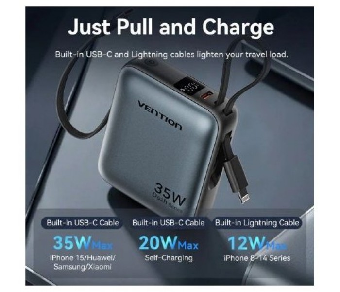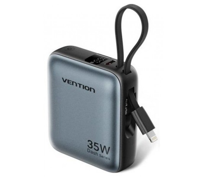 Powerbank 10000mAh Vention FHFN0/ 35W/ Gris/ Incluye Cable USB TIpo-C y Lightning