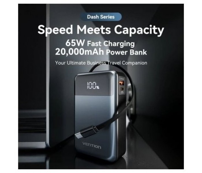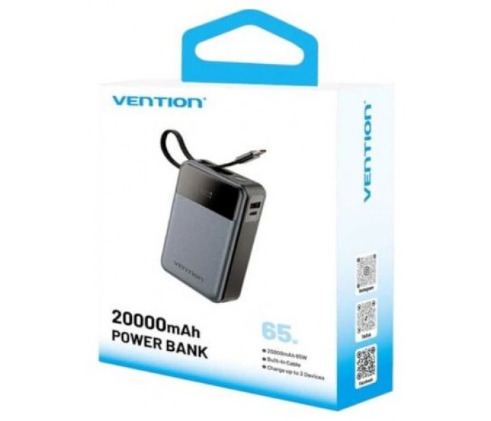 Powerbank 20000mAh Vention FHYB0/ 65W/ Gris/ Incluye Cable USB Tipo-C