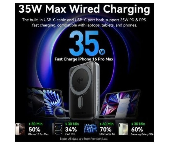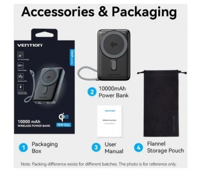 Powerbank 10000mAh Vention FKHH0/ 35W/ Wireless/ Gris/ Incluye Cable USB Tipo-C