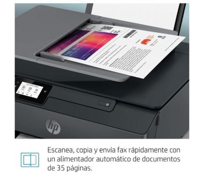 Obtén hasta 12000 páginas en negro o hasta 8000 páginas en color. Disfruta de textos oscuros y definidos, y obtén gráficos con colores intensos en todas tus impresiones. Imprime documentos de forma rápida: obtén velocidades hasta un 38 % más rápidas en comparación con las impresoras HP Smart Tank anteriores. Trabaja rápidamente gracias al alimentador automático de 35 páginas.