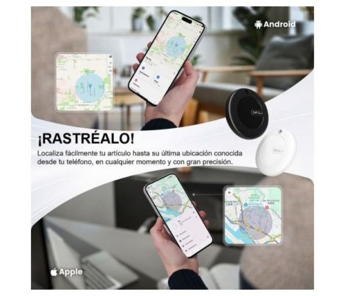 • Compatibilidad: iOS (Apple Buscar) / Android (Google Localizador)