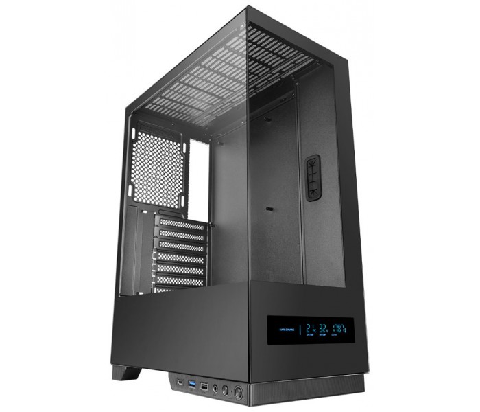 | Otras características | - Compatibilidad: ATX, MicroATX, Mini-ITX - Ranuras de expansión: 7 - Fuente de alimentación: Standard (no incluida) Material - Estructura de acero Diseño - ATX - Doble ventana (cristal templado) - Sección para organizar los cables - Pantalla LCD en el frontal (Temp. CPU, temp. GPU y rpm del ventilador) Puertos - 1 x USB 3.0 - 1 x USB 2.0 - 1 x USB-C - 1 x conector auriculares/micrófono Sistema Ventilación (opcional) - Parte superior: 2 x ventiladores (120 o 140 mm) o un radiador de 240, (no incluído). - Parte inferior: 2 x ventiladores (120 o 140 mm) o un radiador de 240, (no incluído). - Parte trasera: 1 x ventiladores (120 mm) o un radiador de 120, (no incluído). Dimensiones y peso - 450 x 190 x 340 mm - 3,7 kg |