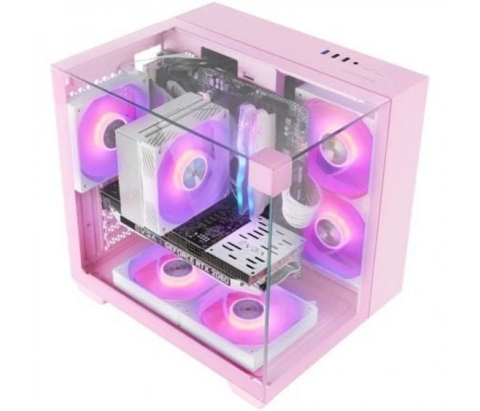 La MC-VISIONM ofrece un diseño único con triple cristal templado continuo sin marco en el frontal, lateral y superior, proporcionando una visión panorámica total del interior de tu setup. Su estructura sin marcos resalta la iluminación y cada componente con un acabado moderno y sofisticado, fusionando estética gaming y funcionalidad avanzada.