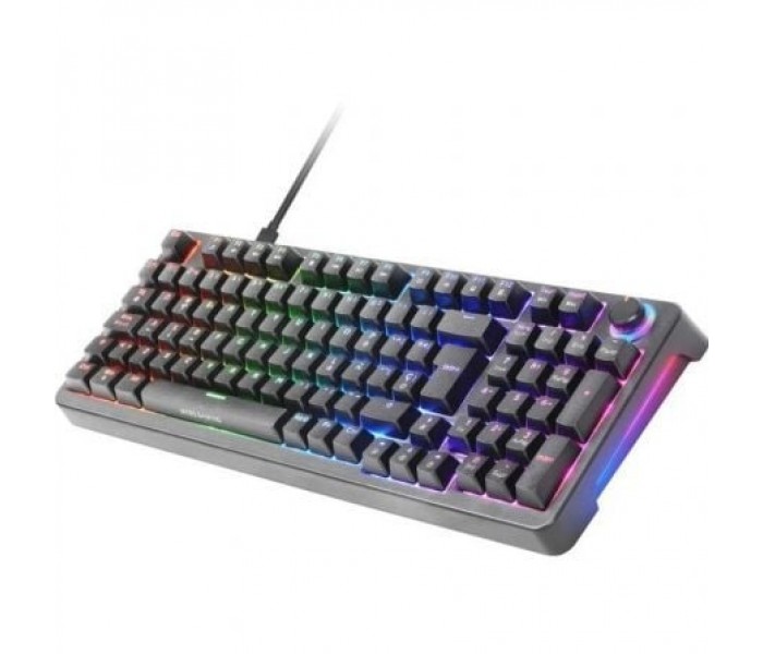 Weight. 750g. Dimensions. 385x140x40mm. Design. Full (97 keys). Keyboard material. ABS. Color. Black. Lighting. RGB Chroma 16.8 million colours with backlit keys. Technology. Mechanic. Switch types. SNK Blue/Yellow. Wire length. 150cm. Connectors. USB 2.0. Wireless. No. Palmrest. No. Polling Rate. 1000Hz. Anti-ghosting. Yes (Full antighosting). Software. Yes (Windows). Compatibility. Windows, *Linux, *Mac, PS4, PS5, XBOX ONE, XBOX SERIES X-S, Nintendo Switch *(Some features may not work due to OS limitations) . Voltage. DC 5V. AC/DC. 300mA. Durability. 50 millions. Actuation point. Blue: 2mm. Actuation force. Blue: 60g. Type of cable. Rubber coating. Keys. Double injection