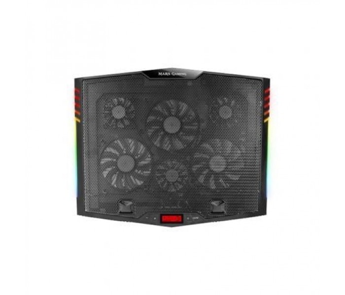 Mars Gaming MNBC5. Tipo de producto: Soporte para ordenador portátil, Color del producto: Negro, Compatibilidad máxima de tamaño con pantallas de ordenadores portátiles: 43,9 cm (17.3"). Número de ventiladores incluidos: 6 pieza(s). Intensidad nominal: 0,8 A, Voltaje de entrada: 5 V. Ancho: 433 mm, Profundidad: 350 mm, Altura: 37 mm. Ancho del paquete: 433 mm, Profundidad del paquete: 350 mm, Altura del paquete: 37 mm