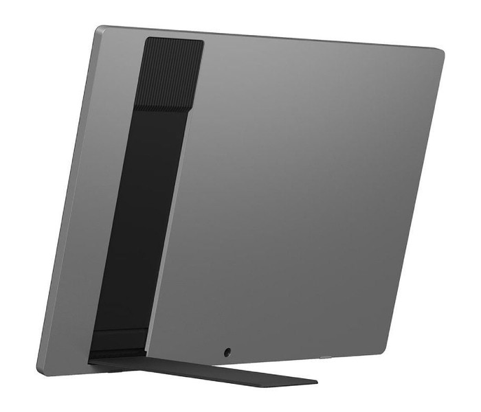 El elegante color plata titanio de gram +view complementa cualquier espacio y armoniza a la perfección con el esbelto diseño de gram. Su soporte integrado, «Kickstand», se despliega fácilmente para una rápida instalación y uso en cualquier lugar, sin necesidad de herramientas adicionales.