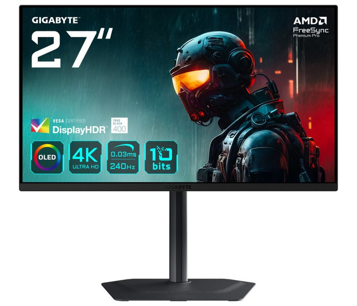 GIGABYTE MO27U2 OLED 4K UHD Gaming Monitor pantalla para PC 68,6 cm (27") 3840 x 2160 Pixeles 4K Ultra HD QD-OLED Negro