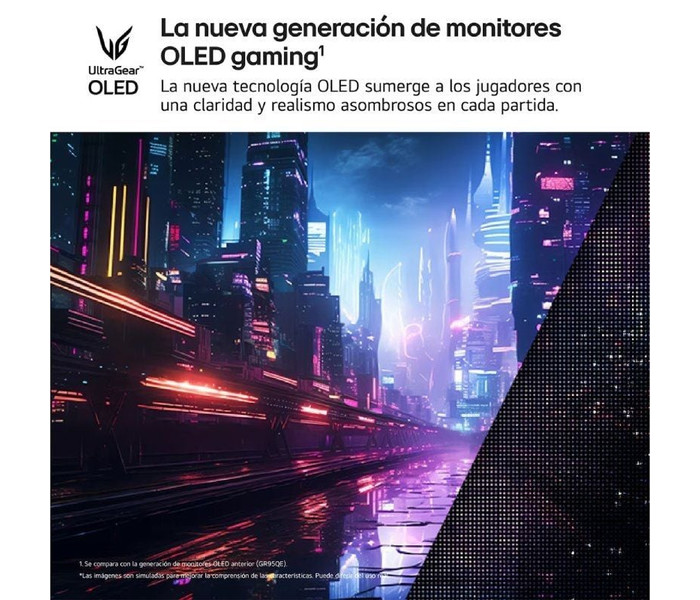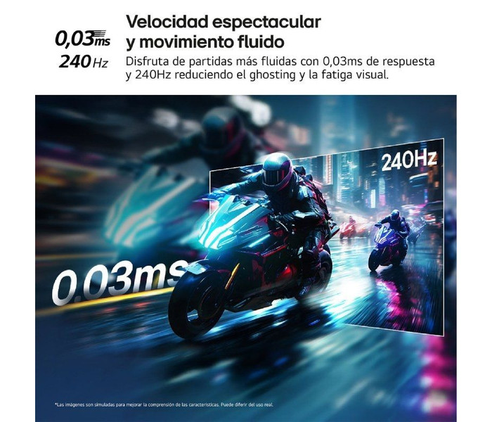 - Panel OLED con una frecuencia de actualización de 240 Hz(1), y con 0,03ms (GtG) de velocidad de respuesta.