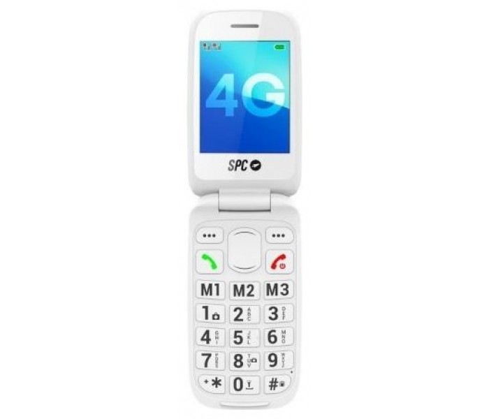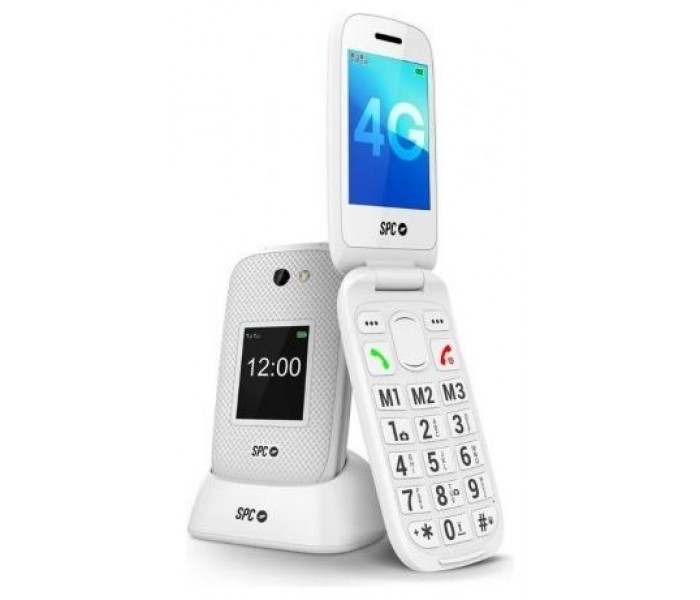 Teléfono móvil 4G con tapa y teclas grandes, menú sencillo, pantalla de 2,8", 9 días de autonomía en uso estándar, base de carga, botón SOS, compatibilidad HAC para audífonos, SMART HELP, cámara trasera y 8 memorias rápidas