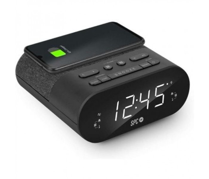 Despertador SPC Frodi QI/ Radio FM/ Base de carga Inalámbrica