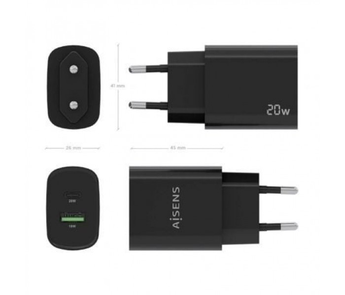 Cargador de Pared Aisens A110-0755/ 1xUSB Tipo-C/ 1xUSB/ 20W