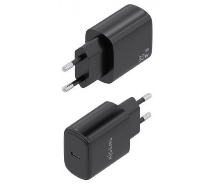Cargador de Pared GaN Aisens A110-0976/ 1xUSB Tipo-C/ 30W/ Negro