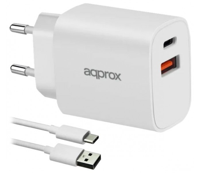 CARGADOR USB DE VIAJE/PARED 1xUSB/USB-C + CABLE USB-A A USB-C 20W BLANCO APPROX