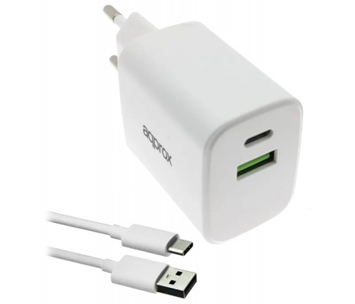 CARGADOR USB DE VIAJE/PARED 1xUSB/USB-C + CABLE USB-A A USB-C 35W BLANCO APPROX