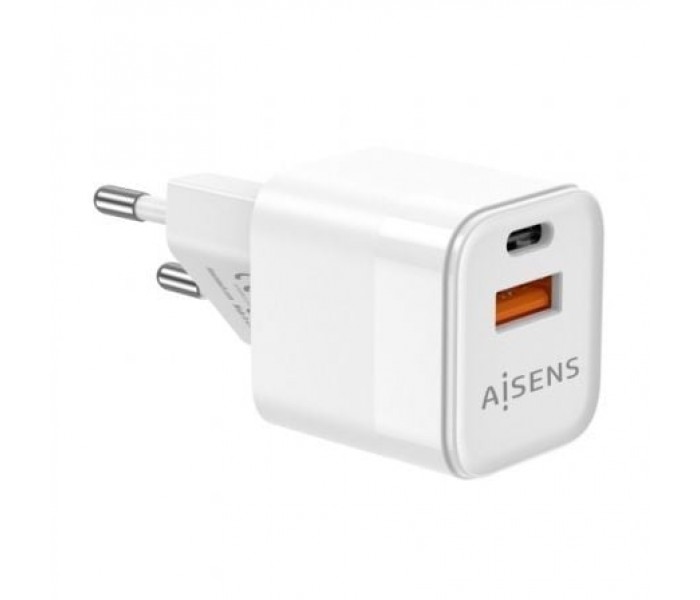 Cargador de Pared GaN Aisens ASCH-30W2P004-W/ 1xUSB Tipo-C/ 1xUSB/ 30W