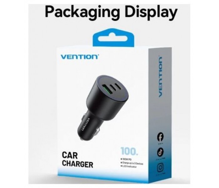 Cargador de Coche Vention FFQB0/ 2xUSB-Tipo C/ 1xUSB/ 100W