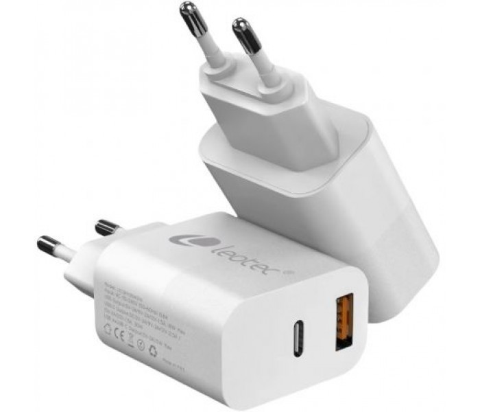 Cargador de Pared GaN Leotec LECSPH30W2W/ 1xUSB Tipo-C/ 1xUSB/ 30W