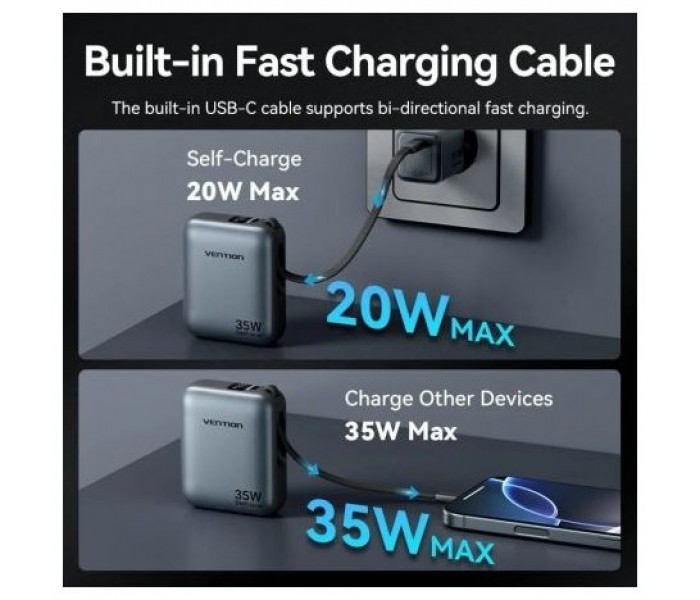 Powerbank 10000mAh Vention FHEH0/ 35W/ Gris