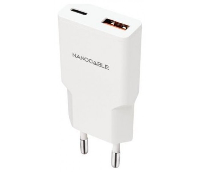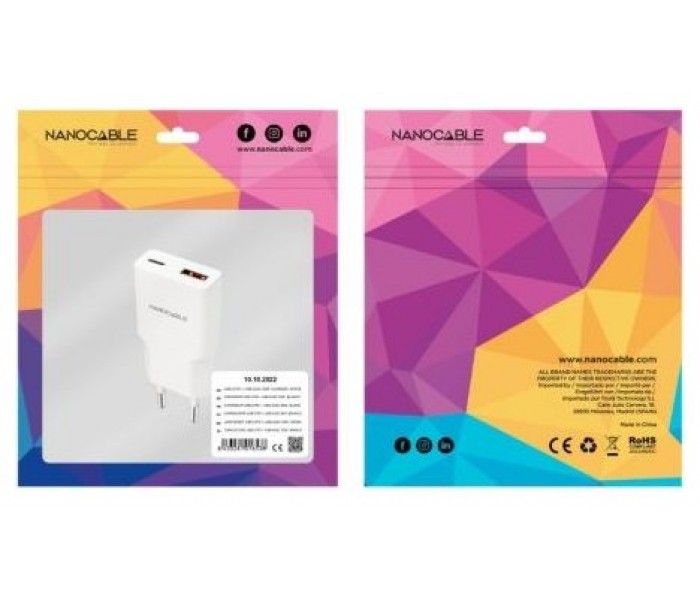 Cargador de Pared Nanocable 10.10.2022/ 1xUSB Tipo-C/ 1xUSB/ 20W/ Blanco