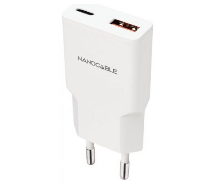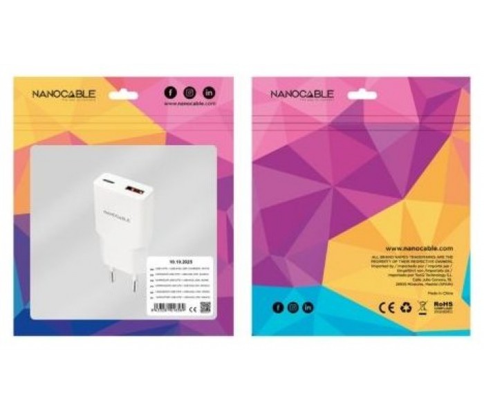 Cargador de Pared Nanocable 10.10.2025/ 1xUSB Tipo-C/ 1xUSB/ 25W/ Blanco