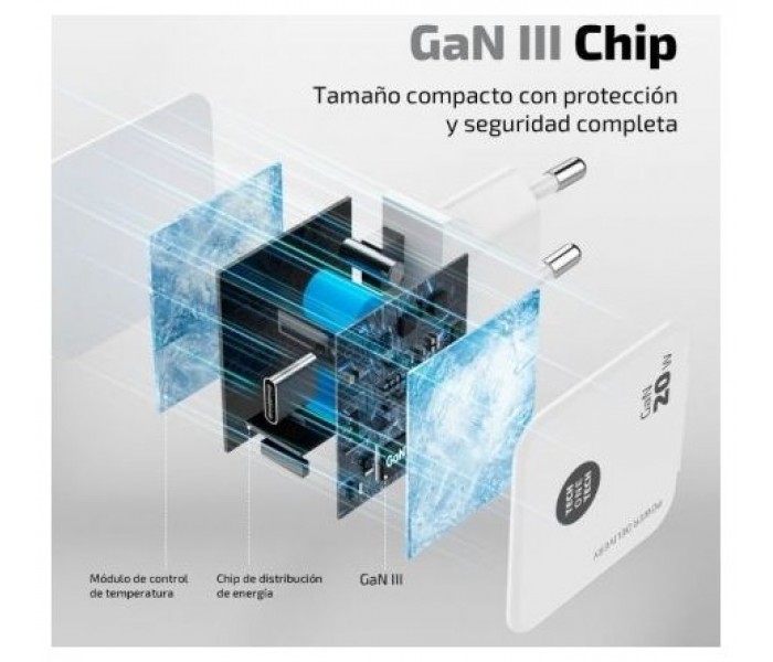 Cargador de Pared GaN Tech One Tech GaN TEC2220/ 1xUSB Tipo-C/ 20W/ Blanco