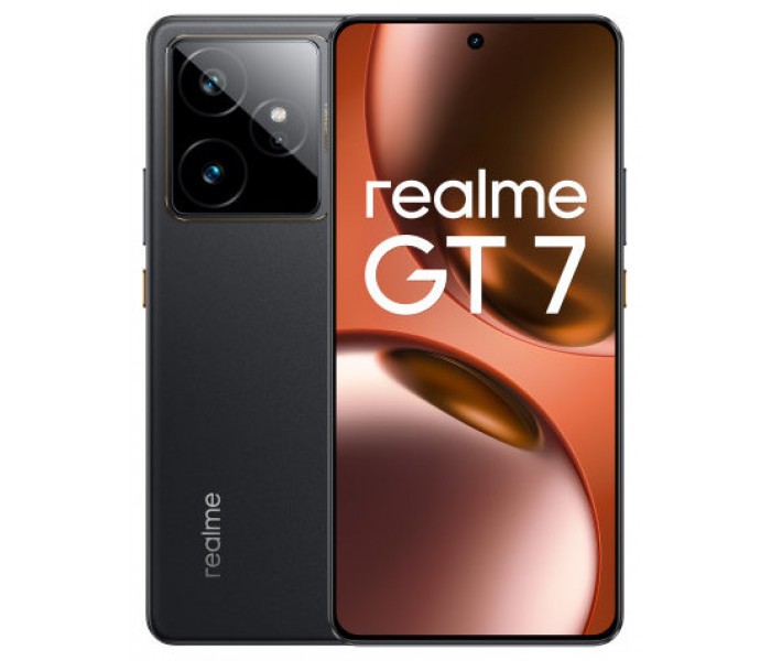 realme GT 7. Diagonal de la pantalla: 17,2 cm (6.78"). Familia de procesador: MediaTek Dimensity. Capacidad de RAM: 12 GB, Capacidad de almacenamiento interno: 512 GB. Resolución de la cámara trasera (numérica): 50 MP, Tipo de cámara trasera: Triple cámara. Capacidad de la tarjeta SIM: SIM doble. Sistema operativo instalado: Android 15. Capacidad de batería: 7000 mAh. Color del producto: Negro