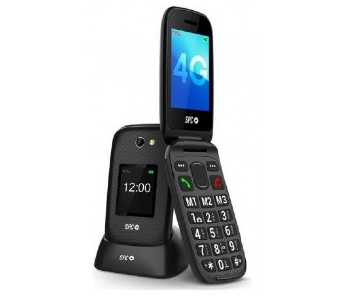 Teléfono móvil 4G con tapa y teclas grandes, menú sencillo, pantalla de 2,8", 9 días de autonomía en uso estándar, base de carga, botón SOS, compatibilidad HAC para audífonos, SMART HELP, cámara trasera y 8 memorias rápidas
