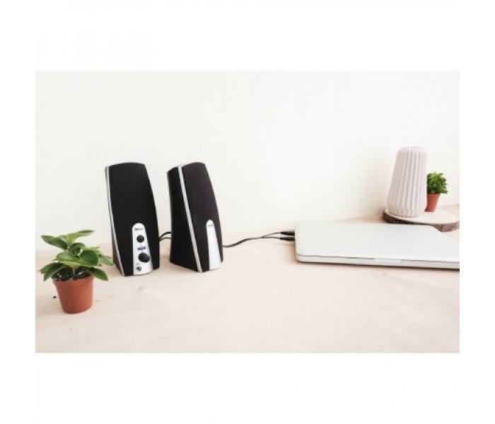 • Compacto juego de altavoces estéreo con potencia de salida RMS de 5 Vatios (máx. potencia: 10 vatios)