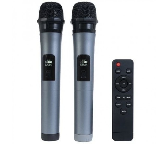 barra de sonido portátil inalámbrica con reproductor bluetooth - usb y 2 micrófonos inalámbricos uhf (525"85 mhz y 625"25 mhz).