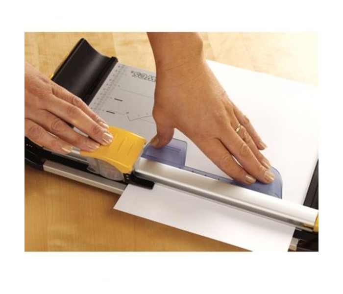 - Barra compresora de papel transparente y ajustable que garantiza un corte más preciso