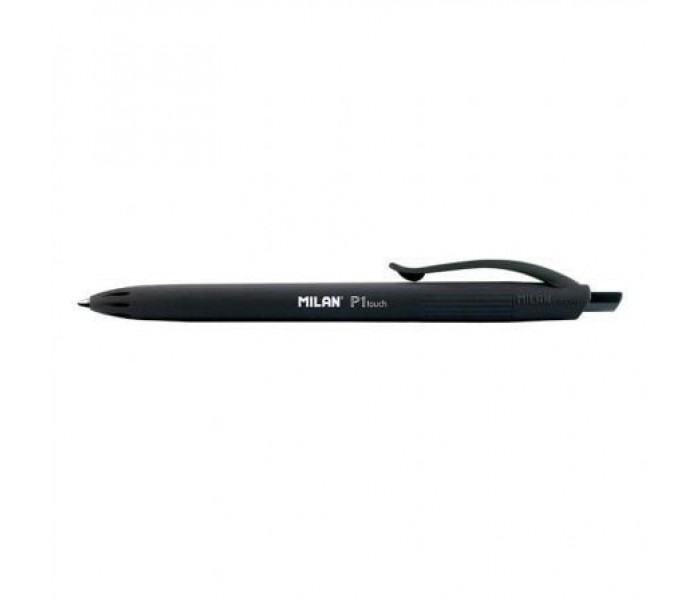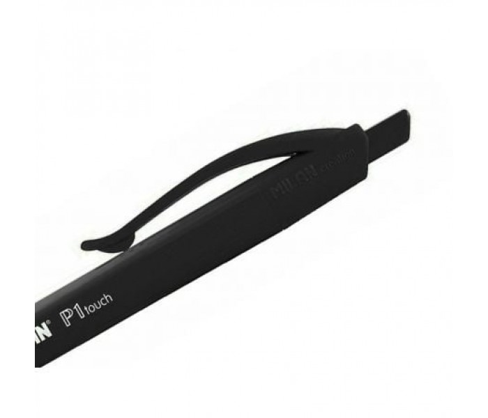 Bolígrafo P1 touch negro, con el cuerpo del mismo color que la tinta. Longitud de escritura aproximada de 1.200 metros. Punta 1 mm. Tinta fabricada en Alemania. Diseño original creado por el departamento de I+D de MILAN. Medidas bolígrafo: 14,1 x 1,7 cm. 1 cm Ø.
