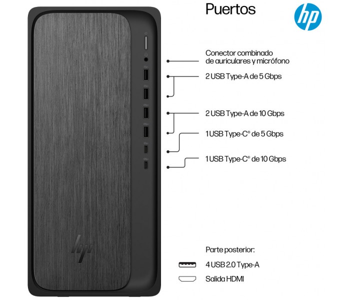 Obtén un rendimiento equilibrado y gráficos con gran capacidad de respuesta gracias al ordenador de sobremesa HP OmniDesk, equipado con procesadores AMD Ryzen™[1]. Las capacidades opcionales de IA admiten una multitarea fluida, mientras que la memoria DDR5 reduce los tiempos de carga. Mantén la productividad con los puertos más recientes, incluido USB-C[4], y gráficos opcionales para unas imágenes inmersivas.