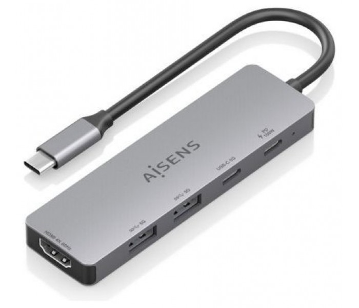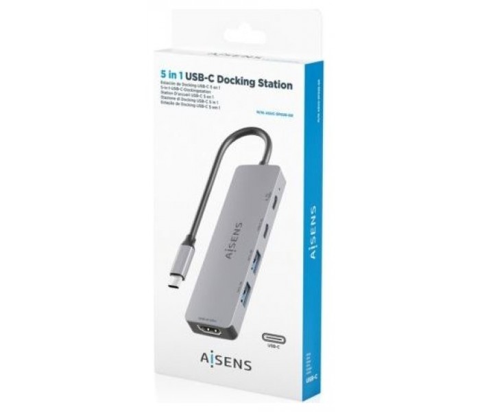 Docking USB Tipo-C Aisens ASUC-5P028-GR/ 1xHDMI 4K/ 2xUSB/ 2xUSB Tipo-C/ 1xUSB Tipo-C PD/ Gris