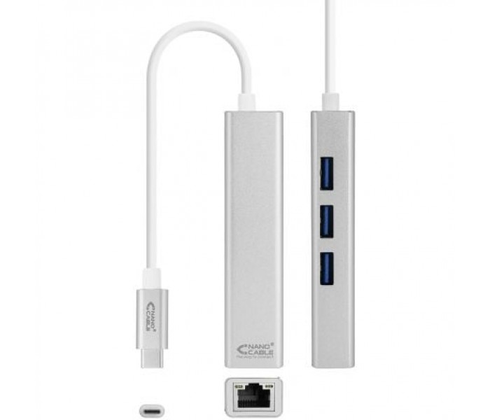 Hub USB Tipo-C Nanocable 10.03.0404/ 3xUSB/ 1xRJ45/ Gris